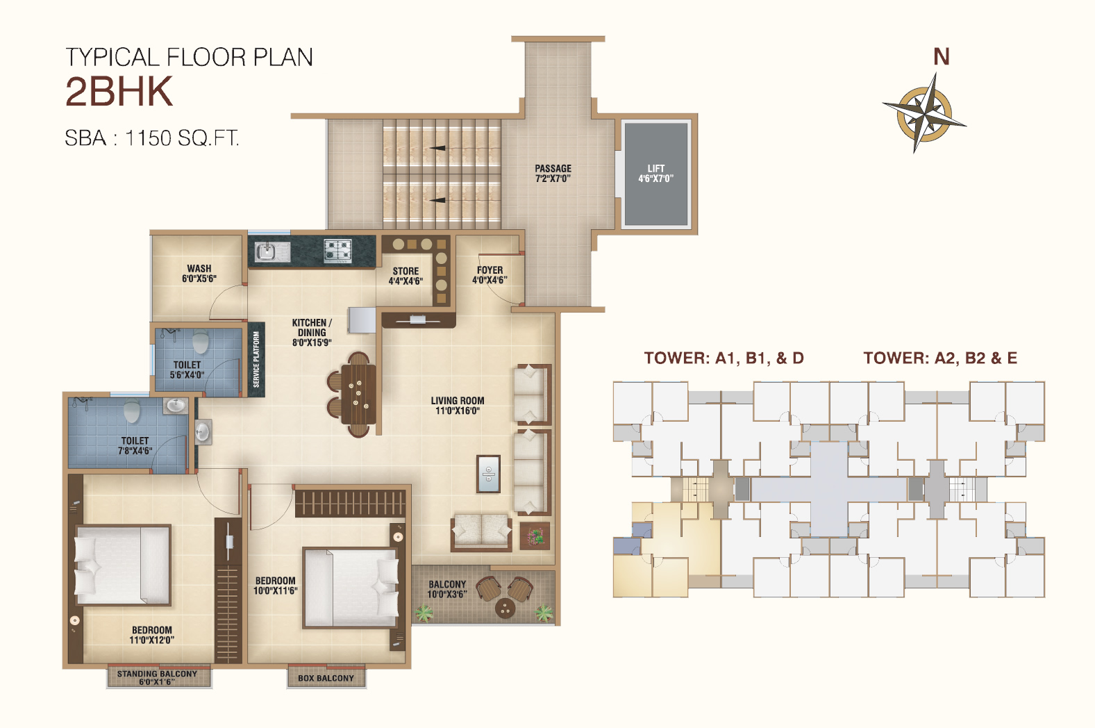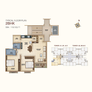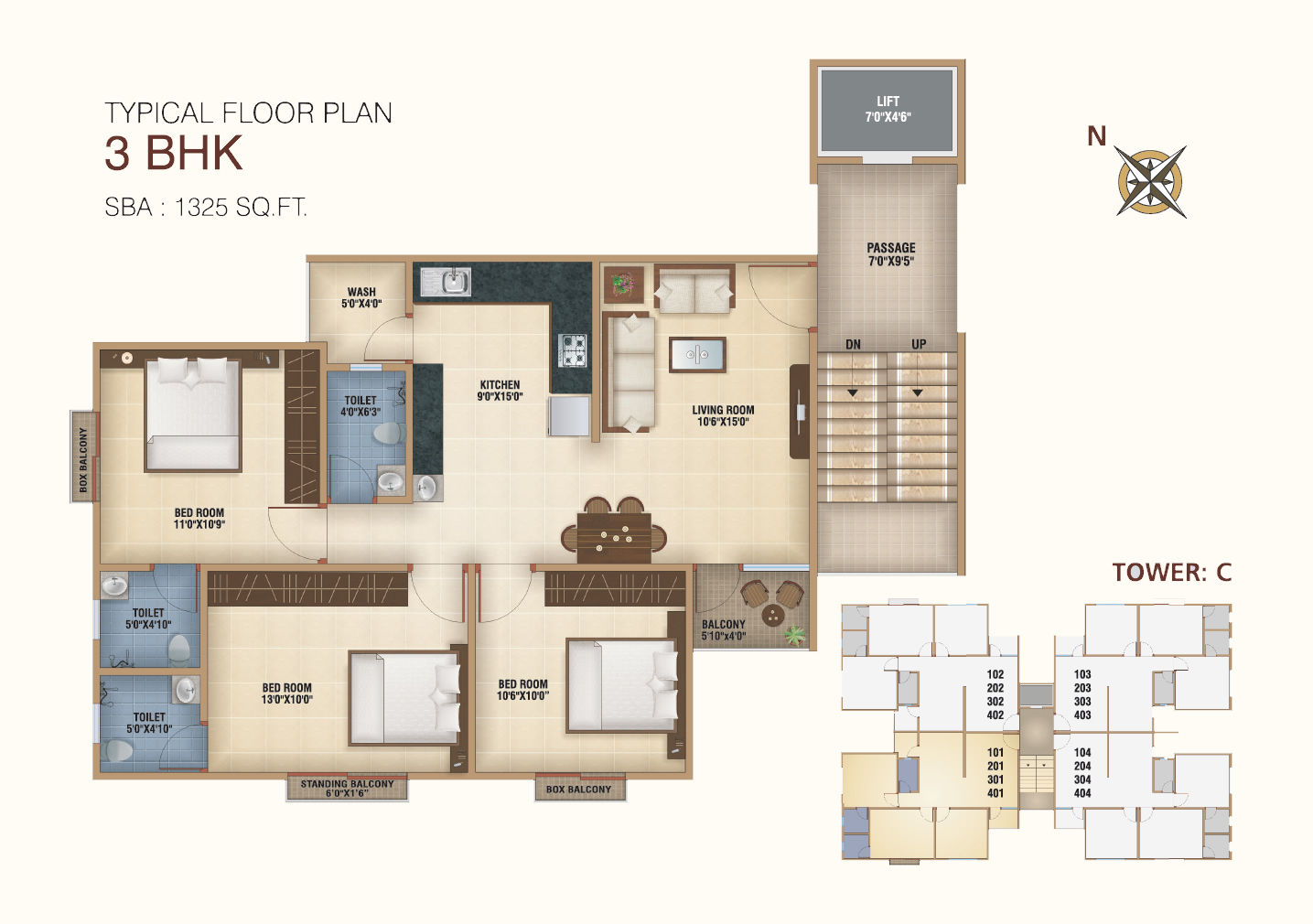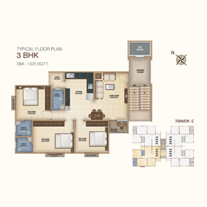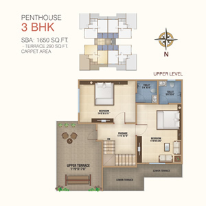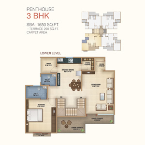 3BHK Penthouse Floor Plan, S.B.A: 1650 SQ. FT. +Terrace 290 SQ. FT Carpet Area.