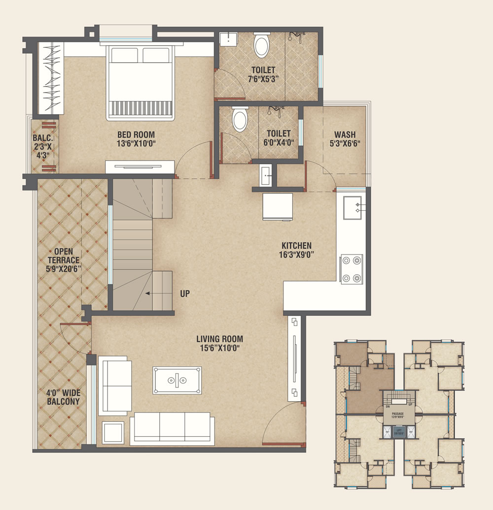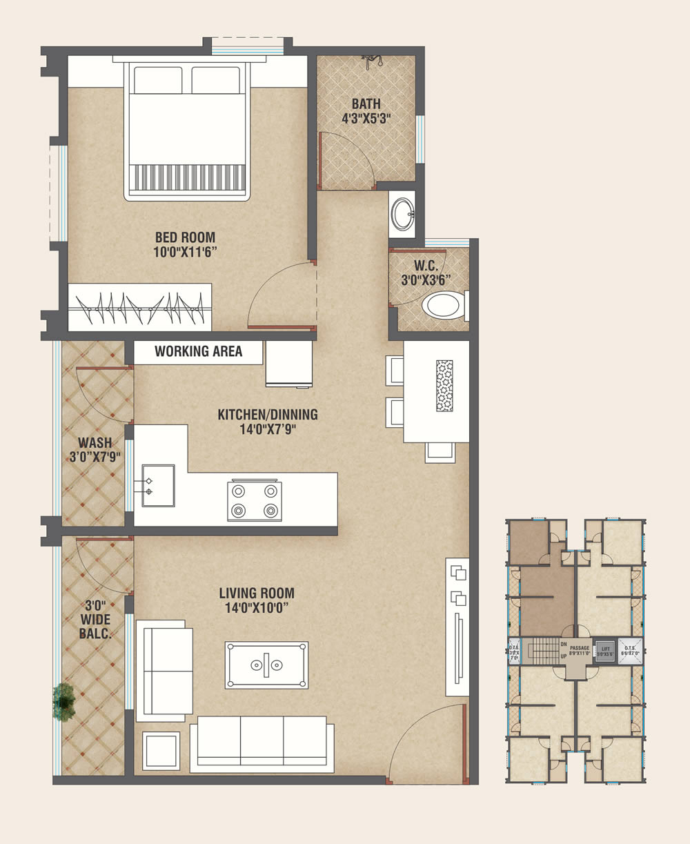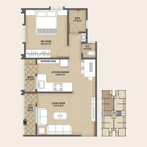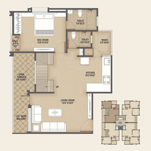 1 BHK SBA - 740.00 SQ.FT.