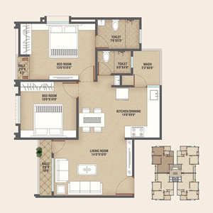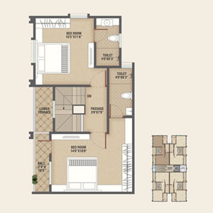 2 BHK Penthouse Floor Plan SBA - 1450.00 SQ.FT.