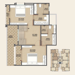3 BHK Penthouse Floor Plan SBA - 1950.00 SQ.FT.