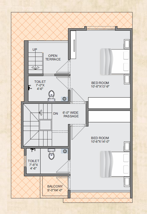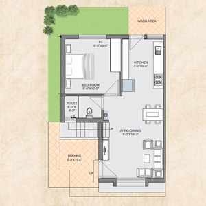 Type F - Minimum Plot Area: 760 Sq. Ft. • Built-Up Area: 1300 Sq. Ft.
