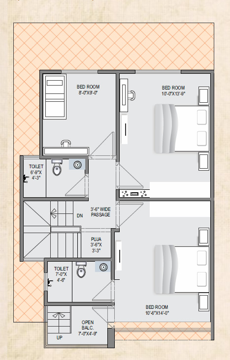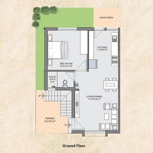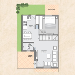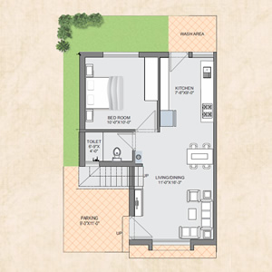 Type E - Minimum Plot Area: 675 Sq. Ft. • Built-Up Area: 1225 Sq. Ft.
